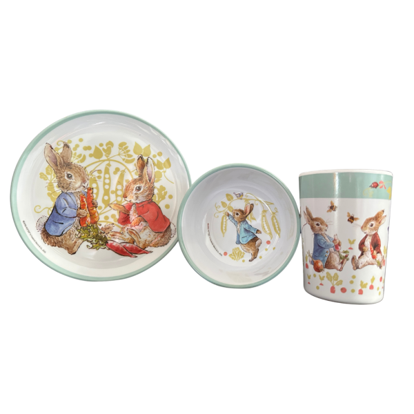 Beatrix Potter Peter Rabbit Melamine 3 Piece Bowl Plate Tumbler Set