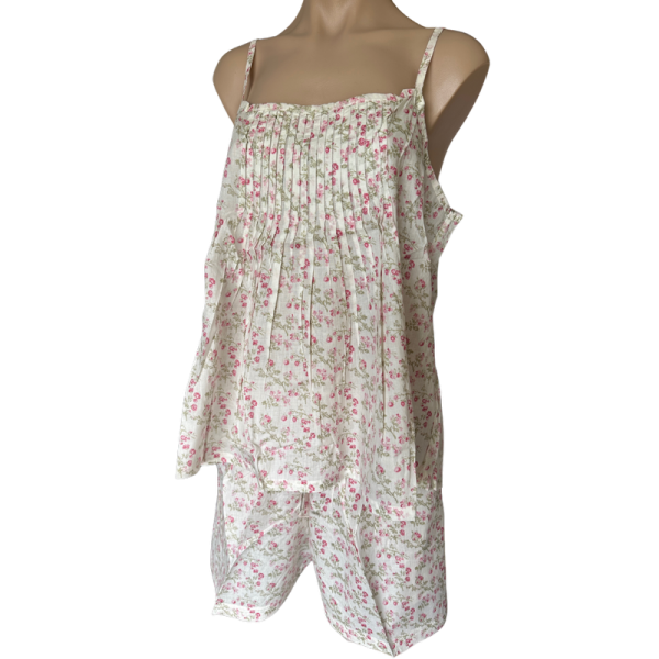Arabella Pyjama Set | Cami & Shorts Pink Floral 100% Pure Cotton Voile